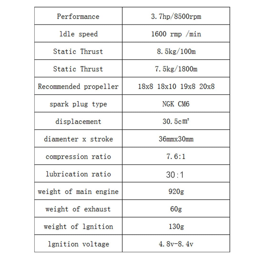 Recommended Propellers:18×8 for break-in, 18×10, 19×8, 20×8