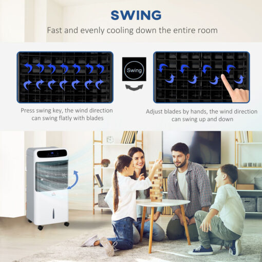 The Evaporative Air Cooler offers three fan speeds and modes, allowing you to customize the airflow according to your preferences. The easy-to-use control panel and remote control make it convenient to adjust the settings from anywhere in the room.