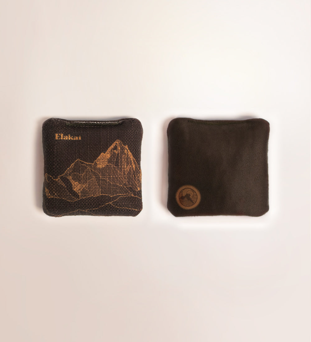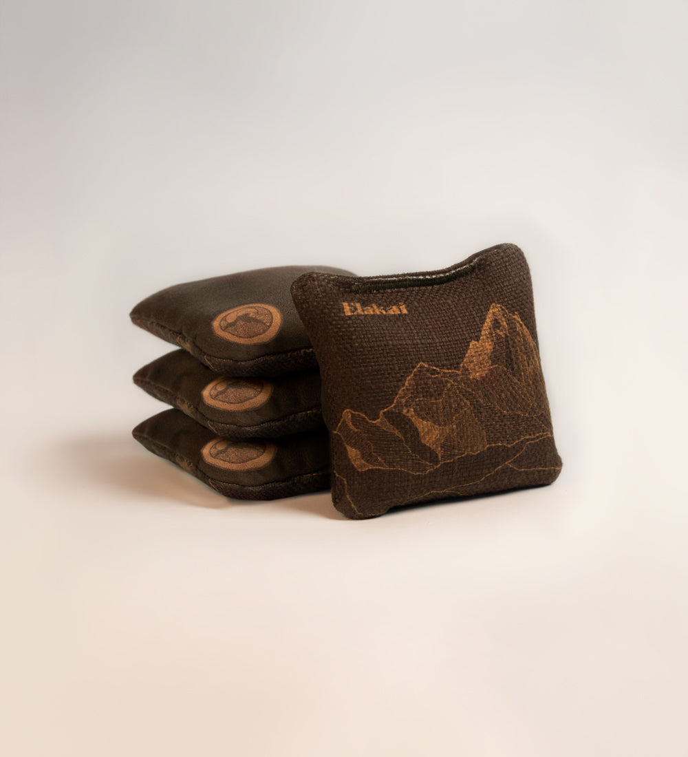 - One set of four (4) 4-in x 4-in travel-size, all-weather, dual-sided cornhole bags
